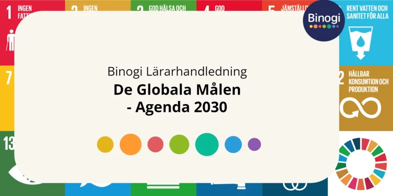 I september 2015 beslutade FN om ett antal gemensamma mål under namnet “Agenda 2030”, och det är den mest ambitiösa agendan för hållbar utveckling som världens länder någonsin antagit. Agenda 2030 är ingen lag, utan ett dokument som länderna frivilligt har skrivit under. Ansvaret för att nå målen ligger på respektive regering i samtliga FN-länder, men vi har alla ett ansvar för att ingen människa ska lämnas utanför. Det finns 17 stycken mål. På Binogi vill vi förenkla för lärare att hitta i vårt stora bibliotek av lektioner som passar till undervisning kring de Globala målen från Agenda 2030.