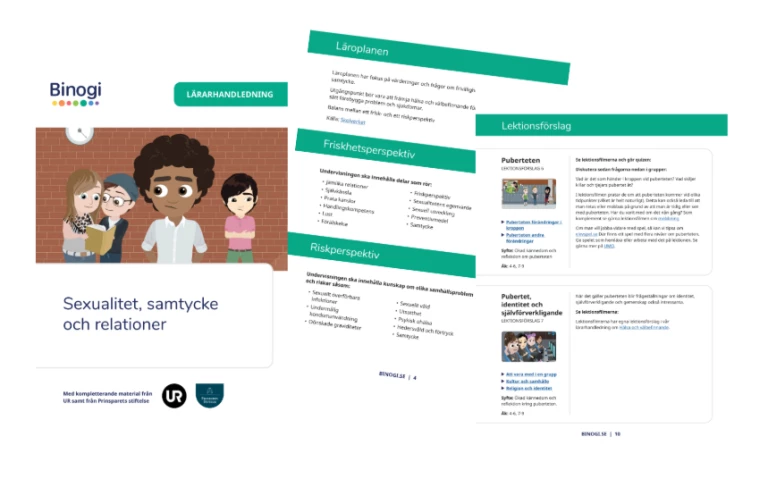 Binogis lärarhandledning för Sexualitet, samtycke och relationer. Nu uppdaterad i samverkan med Prinsparets Stiftelse och URplay med länkar till material. Tre källor, Binogi, Prinsparets Stiftelse och UR som på ett fint sätt kompletterar varandra i undervisningen inom SSR.
