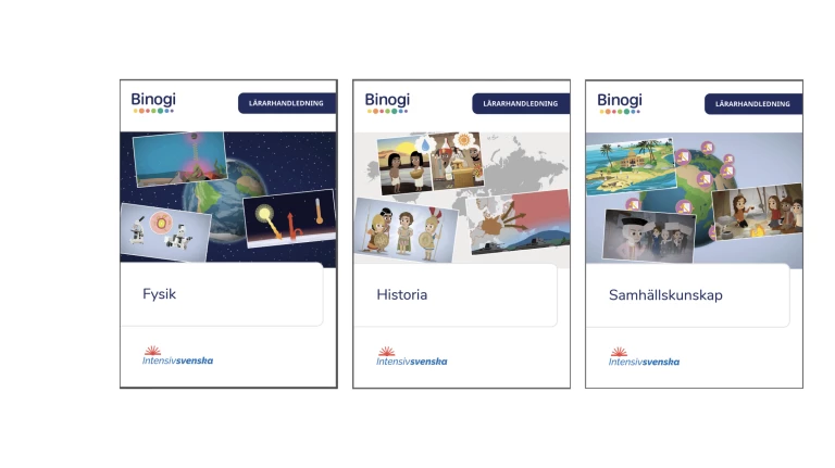 Handledningarna innehåller utvalda Binogifilmer för varje vecka, kopplade till Intensivsvenskas ämnesplaneringar. Filmerna stödjer både ämneskunskap och språkutveckling genom att erbjuda visuella förklaringar på flera språk. Dessa handledningar gäller det centrala innehållet för Samhällskunskap, Historia och Fysik åk 7–9.